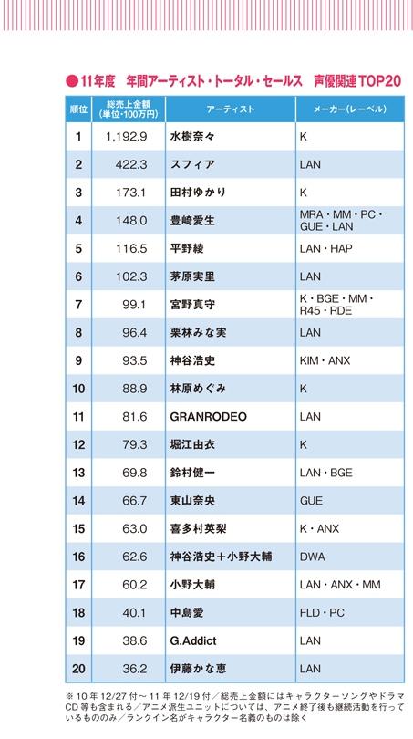 2011年 聲優CD oricon銷量排名